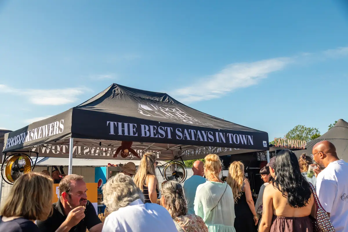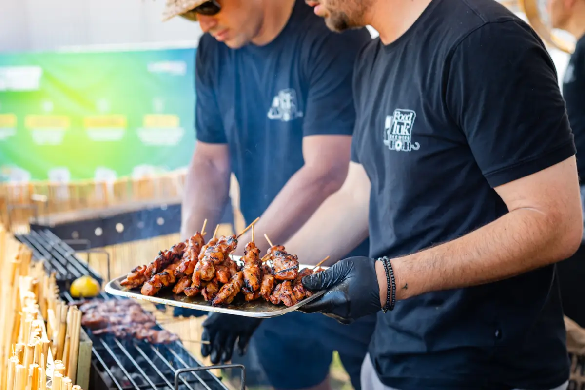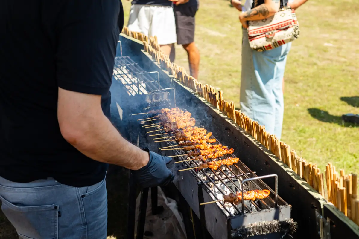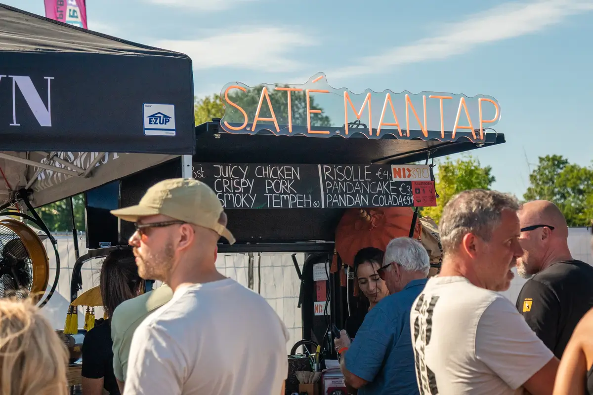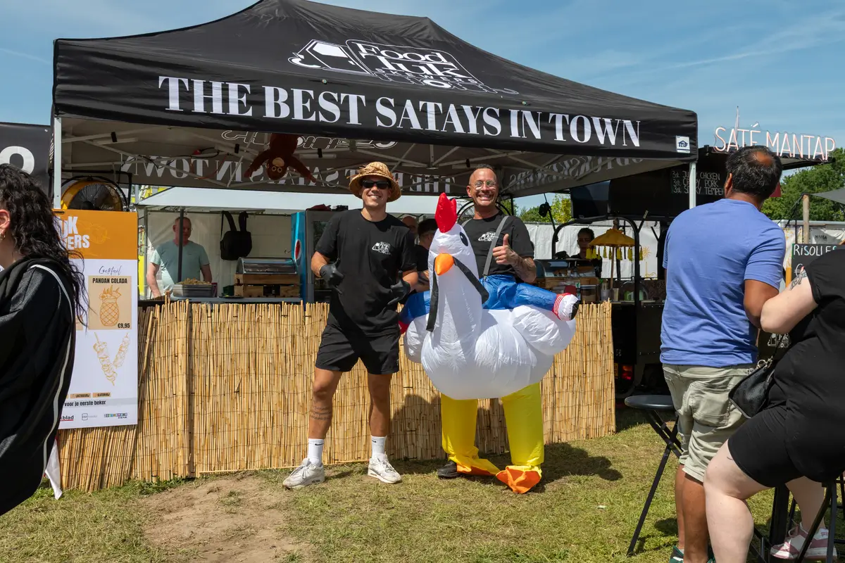 De foodtuk, personeel, servies, sauzen, prullenbakken, indien gewenst een tent met statafels, en natuurlijk heel veel smaak en gezelligheid.